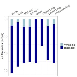 Ice is never 100% safe, measurements in the chart are specific to designated monitoring stations. Data collection spans January 8 to January 22, 2026.