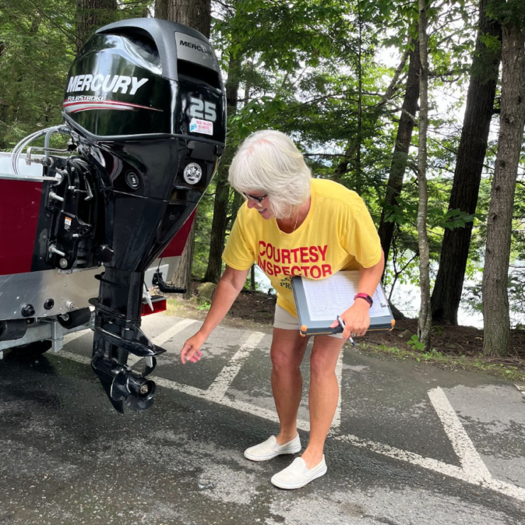 Courtesy Boat Inspectors (CBIs; the friendly folks in yellow t-shirts at public boat launches) are the first defense against the spread of invasive aquatic species. As part of a state-wide initiative led by Maine-DEP, our CBIs are there to teach boaters on how to properly inspect all watercraft and equipment for invasive aquatic hitchhikers. The program provides an opportunity to connect and educate the community on the impact of invasive species as well as ensuring that boats do not become vessels for transport.